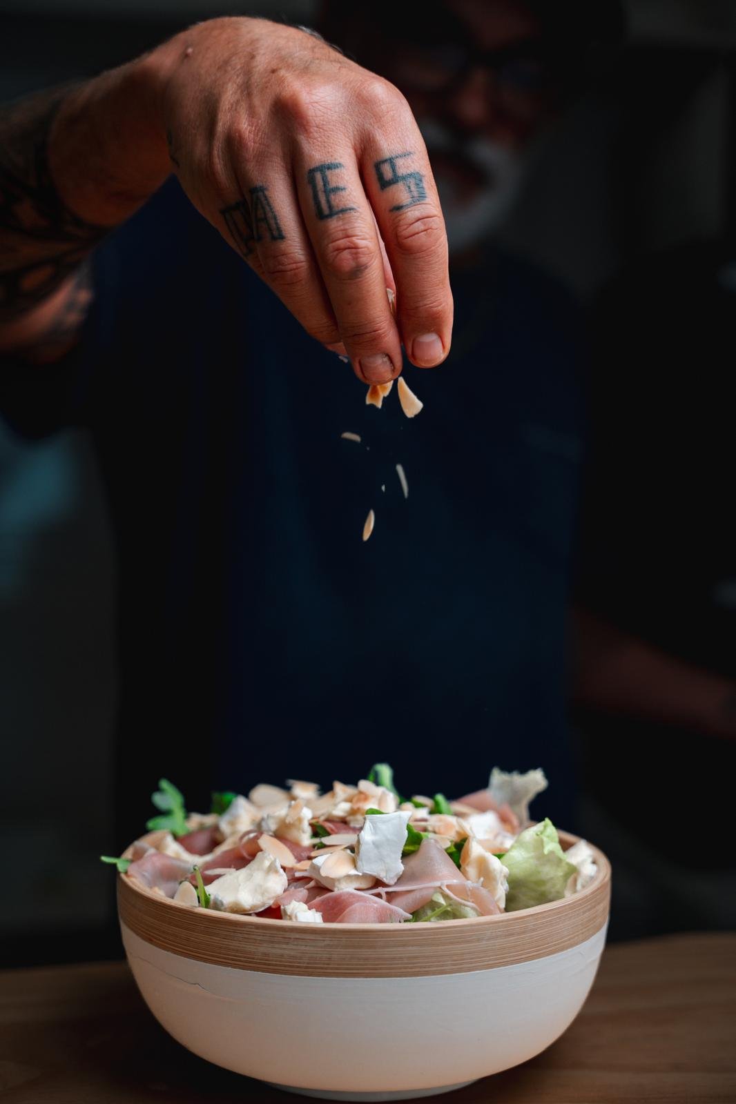 LETTUCE, ARUGULA, HAM, BRIE CHEESE, WITH TOASTED ALMONDS / 10,80